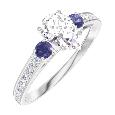 « L'ATELIER » NO. 182868Ring White gold 9 carats - Laboratory Diamond Pear 0.5 Carats - Ring settings Blue Sapphire - Setting Laboratory Diamond