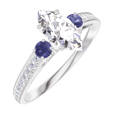 « L'ATELIER » NO. 182968Ring White gold 9 carats - Laboratory Diamond Marquise 0.5 Carats - Ring settings Blue Sapphire - Setting Laboratory Diamond