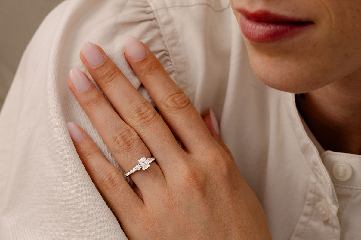 « L'ATELIER » Nº185028Ring White gold 9 carats - Laboratory Diamond Baguette 0.7 Carats - Ring settings Laboratory Diamond - Setting Laboratory Diamond