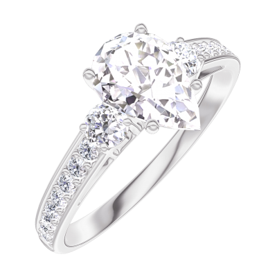 « L'ATELIER » NO. 185227Ring White gold 18 carats - Laboratory Diamond Pear 0.7 Carats - Ring settings Laboratory Diamond - Setting Laboratory Diamond