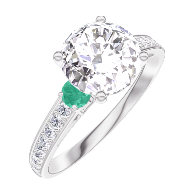 « L'ATELIER » Nº187288Ring White gold 9 carats - Laboratory Diamond round 1 Carats - Ring settings Emerald - Setting Laboratory Diamond 4.8