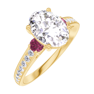 « L'ATELIER » Nº187545Ring Yellow gold 18 carats - Laboratory Diamond Oval 1 Carats - Ring settings Ruby - Setting Laboratory Diamond 4.7