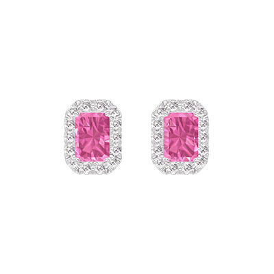 « L'ATELIER » NO. 188228Earrings White gold 9 carats - Pink Sapphire Baguette 0.3 Carats (2 X) - Halo Diamond white
