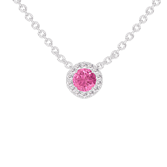 « L'ATELIER » NO. 189617Necklace White gold 9 carats - Pink Sapphire round 0.3 Carats - Halo Diamond white - Chain Rolo