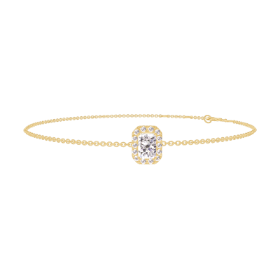« L'ATELIER » NO. 200074Bracelet Yellow gold 9 carats - Diamond white Baguette 0.3 Carats - Halo Diamond white - Chain Rolo