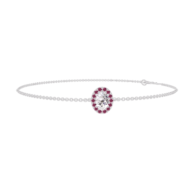 « L'ATELIER » Nº200116Bracelet White gold 9 carats - Diamond white Oval 0.3 Carats - Halo Ruby - Chain Rolo