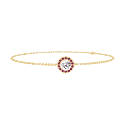 « L'ATELIER » NO. 200210Bracelet Yellow gold 9 carats - Laboratory Diamond round 0.3 Carats - Halo Ruby - Chain Rolo 4.7