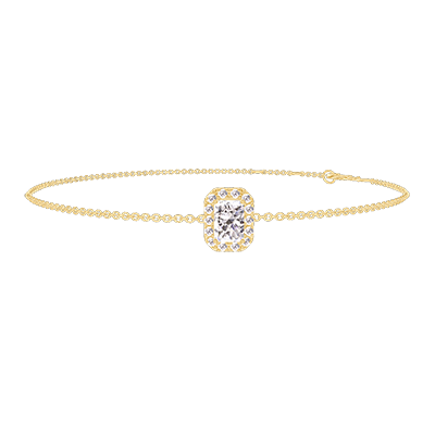 « L'ATELIER » NO. 200265Bracelet Yellow gold 18 carats - Laboratory Diamond Baguette 0.3 Carats - Halo Laboratory Diamond - Chain Rolo