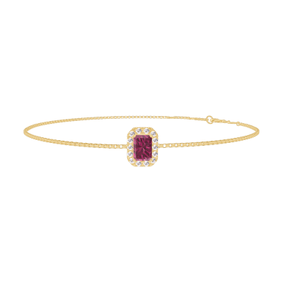 « L'ATELIER » Nº200462Bracelet Yellow gold 9 carats - Ruby Baguette 0.3 Carats - Halo Diamond white - Chain Venetian