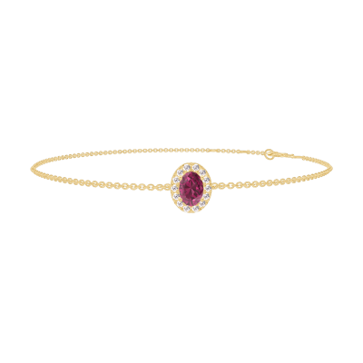 « L'ATELIER » NO. 200490Bracelet Yellow gold 9 carats - Ruby Oval 0.3 Carats - Halo Diamond white - Chain Rolo