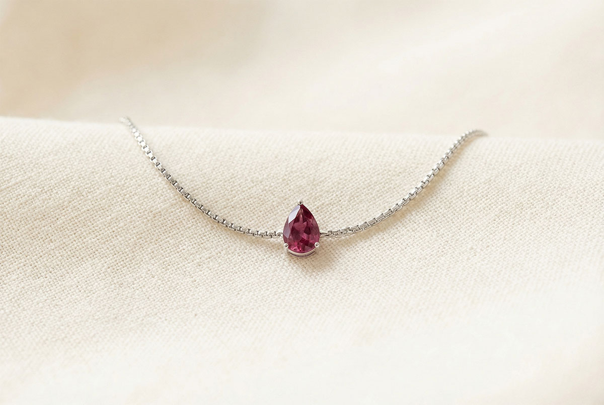 « L'ATELIER » NO. 200520Bracelet White gold 9 carats - Ruby Pear 0.3 Carats - Chain Venetian