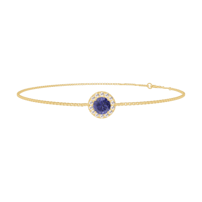 « L'ATELIER » Nº200590Bracelet Yellow gold 9 carats - Blue Sapphire round 0.3 Carats - Halo Diamond white - Chain Venetian 4.7