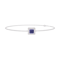 Bracelet White gold 18 carats - Blue Sapphire Princess 0.3 Carats - Halo Diamond white - Chain Rolo