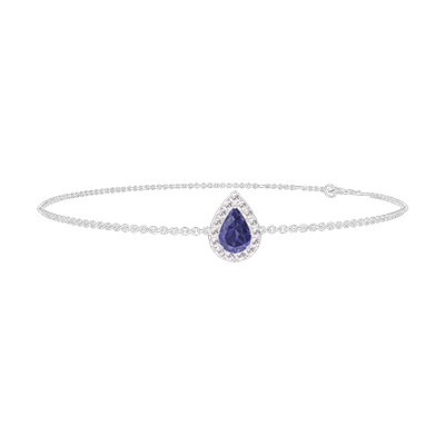 « L'ATELIER » NO. 200715Bracelet White gold 18 carats - Blue Sapphire Pear 0.3 Carats - Halo Diamond white - Chain Rolo