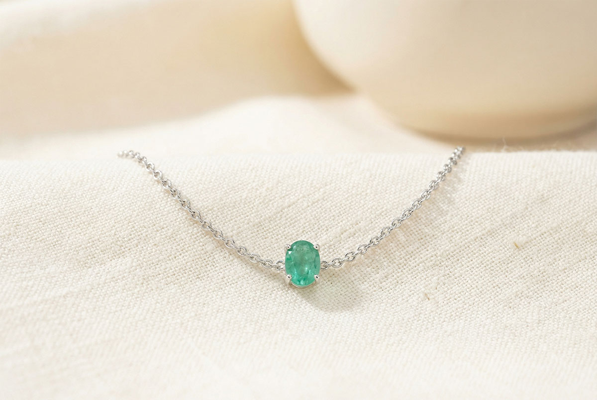 « L'ATELIER » NO. 200868Bracelet White gold 9 carats - Emerald Oval 0.3 Carats - Chain Rolo