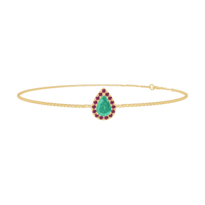 « L'ATELIER » NO. 200917Bracelet Yellow gold 18 carats - Emerald Pear 0.3 Carats - Halo Ruby - Chain Venetian