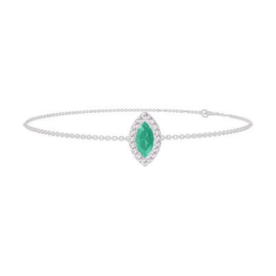 « L'ATELIER » NO. 200940Bracelet White gold 9 carats - Emerald Marquise 0.3 Carats - Halo Diamond white - Chain Rolo