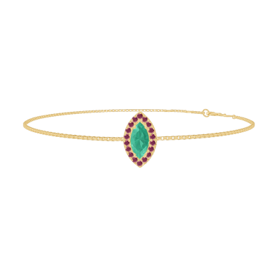 « L'ATELIER » NO. 200950Bracelet Yellow gold 9 carats - Emerald Marquise 0.3 Carats - Halo Ruby - Chain Venetian