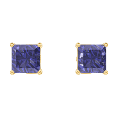 « L'ATELIER » NO. 201266Earrings Yellow gold 9 carats - Blue Sapphire Princess 0.3 Carats (2 X)