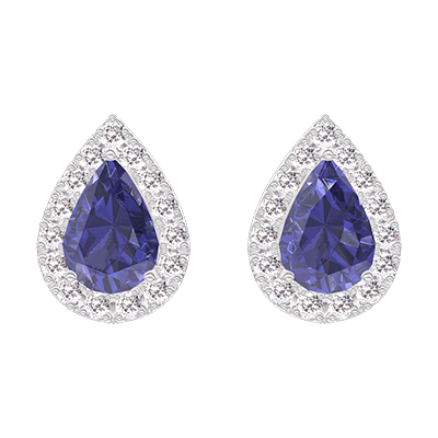 « L'ATELIER » NO. 201320Earrings White gold 9 carats - Blue Sapphire Pear 0.3 Carats (2 X) - Halo Diamond white
