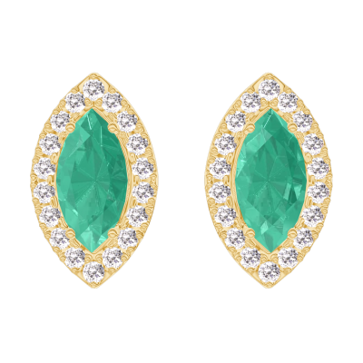 « L'ATELIER » Nº201430Earrings Yellow gold 9 carats - Emerald Marquise 0.3 Carats (2 X) - Halo Diamond white