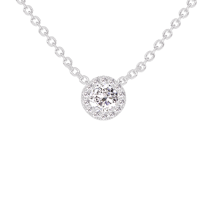 « L'ATELIER » NO. 201643Necklace White gold 18 carats - Laboratory Diamond round 0.3 Carats - Halo Laboratory Diamond - Chain Rolo