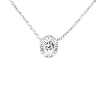 « L'ATELIER » NO. 201744Necklace White gold 9 carats - Laboratory Diamond Oval 0.3 Carats - Halo Laboratory Diamond - Chain Venetian