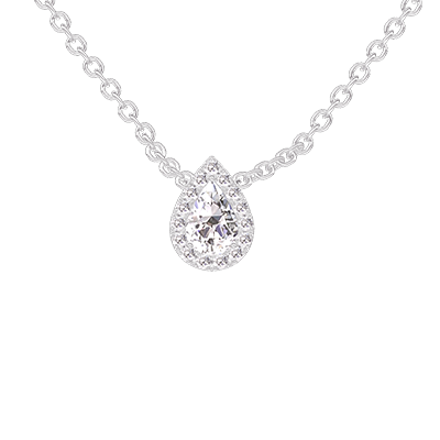 « L'ATELIER » NO. 201771Necklace White gold 18 carats - Laboratory Diamond Pear 0.3 Carats - Halo Laboratory Diamond - Chain Rolo