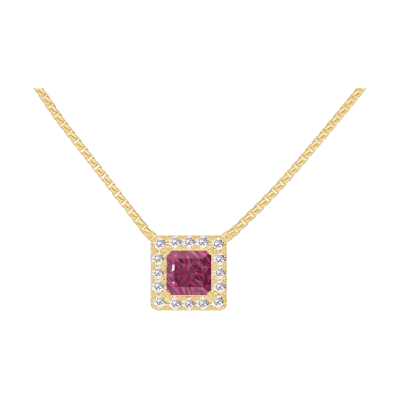 « L'ATELIER » Nº201869Necklace Yellow gold 18 carats - Ruby Princess 0.3 Carats - Halo Diamond white - Chain Venetian