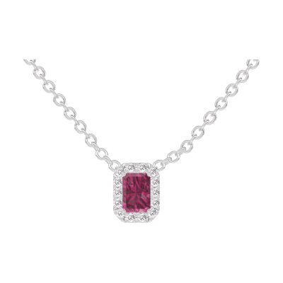 « L'ATELIER » NO. 201899Necklace White gold 18 carats - Ruby Baguette 0.3 Carats - Halo Diamond white - Chain Rolo
