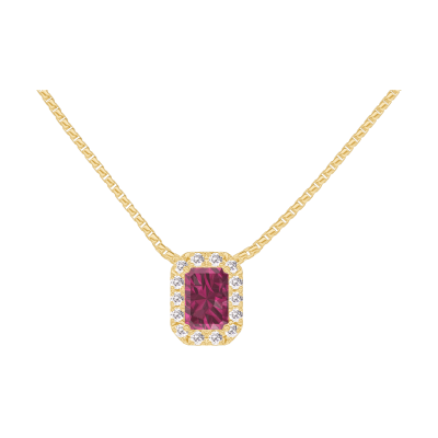 « L'ATELIER » Nº201901Necklace Yellow gold 18 carats - Ruby Baguette 0.3 Carats - Halo Diamond white - Chain Venetian