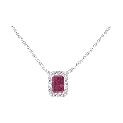 « L'ATELIER » NO. 201903Necklace White gold 18 carats - Ruby Baguette 0.3 Carats - Halo Diamond white - Chain Venetian
