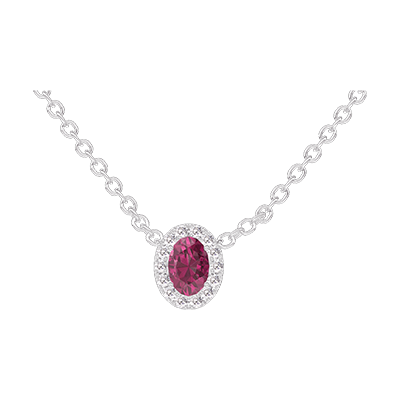 « L'ATELIER » NO. 201932Necklace White gold 9 carats - Ruby Oval 0.3 Carats - Halo Diamond white - Chain Rolo