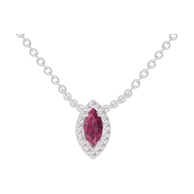 « L'ATELIER » NO. 201996Necklace White gold 9 carats - Ruby Marquise 0.3 Carats - Halo Diamond white - Chain Rolo