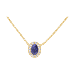 « L'ATELIER » NO. 202125Necklace Yellow gold 18 carats - Blue Sapphire Oval 0.3 Carats - Halo Diamond white - Chain Venetian