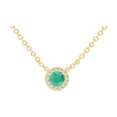 « L'ATELIER » NO. 202218Necklace Yellow gold 9 carats - Emerald round 0.3 Carats - Halo Diamond white - Chain Rolo