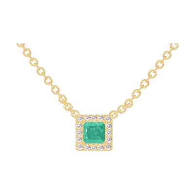 « L'ATELIER » NO. 202250Necklace Yellow gold 9 carats - Emerald Princess 0.3 Carats - Halo Diamond white - Chain Rolo