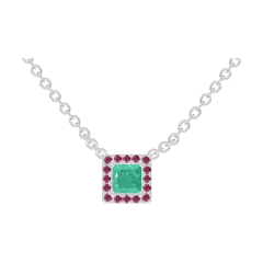 « L'ATELIER » NO. 202259Necklace White gold 18 carats - Emerald Princess 0.3 Carats - Halo Ruby - Chain Rolo