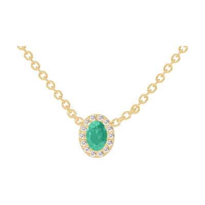 « L'ATELIER » Nº202314Necklace Yellow gold 9 carats - Emerald Oval 0.3 Carats - Halo Diamond white - Chain Rolo