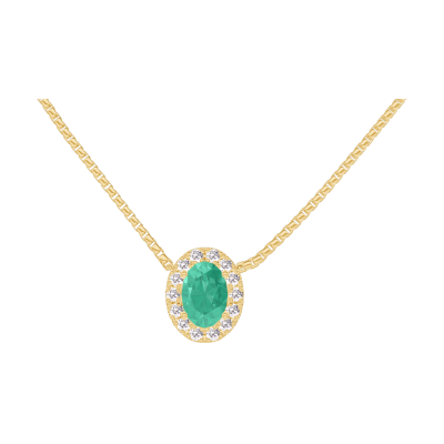 « L'ATELIER » Nº202318Necklace Yellow gold 9 carats - Emerald Oval 0.3 Carats - Halo Diamond white - Chain Venetian