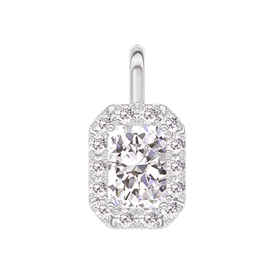 « L'ATELIER » NO. 202836Pendant White gold 9 carats - Diamond white Baguette 0.3 Carats - Halo Diamond white - No Chain