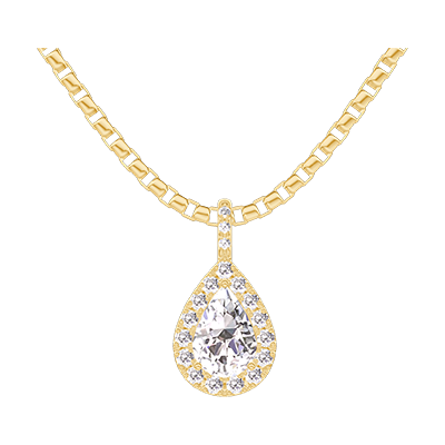 « L'ATELIER » NO. 203254Pendant Yellow gold 9 carats - Diamond white Pear 0.3 Carats - Halo Diamond white - Setting Diamond white - Chain Venetian