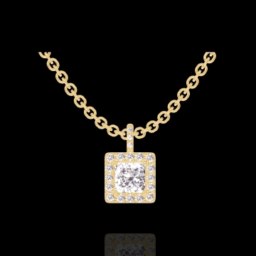 « L'ATELIER » Nº203813Pendant Yellow gold 18 carats - Laboratory Diamond Princess 0.3 Carats - Halo Laboratory Diamond - Setting Laboratory Diamond - Chain Rolo