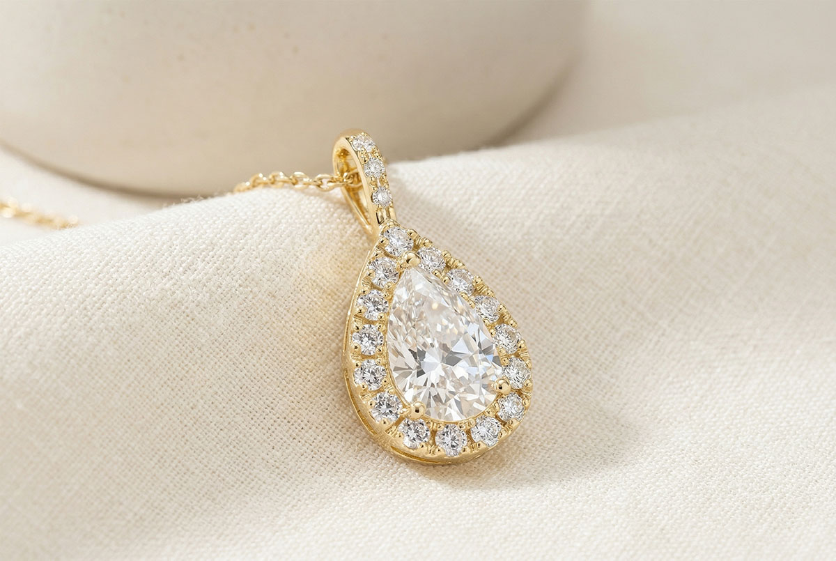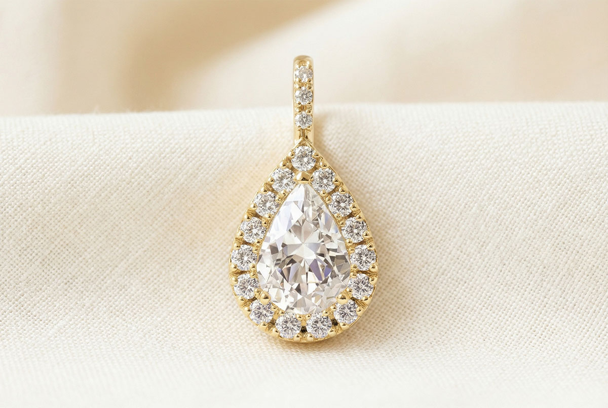 « L'ATELIER » NO. 204373Pendant Yellow gold 18 carats - Laboratory Diamond Pear 0.3 Carats - Halo Laboratory Diamond - Setting Laboratory Diamond - No Chain