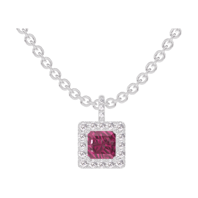 « L'ATELIER » Nº204968Pendant White gold 9 carats - Ruby Princess 0.3 Carats - Halo Diamond white - Setting Diamond white - Chain Rolo