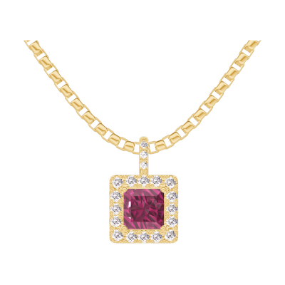 « L'ATELIER » NO. 204982Pendant Yellow gold 9 carats - Ruby Princess 0.3 Carats - Halo Diamond white - Setting Diamond white - Chain Venetian