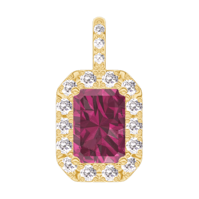 « L'ATELIER » NO. 205142Pendant Yellow gold 9 carats - Ruby Baguette 0.3 Carats - Halo Diamond white - Setting Diamond white - No Chain