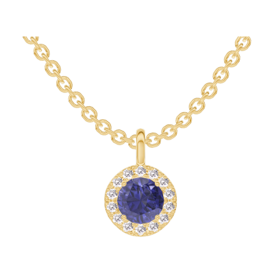 « L'ATELIER » NO. 205922Pendant Yellow gold 9 carats - Blue Sapphire round 0.3 Carats - Halo Diamond white - Chain Rolo 4