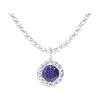« L'ATELIER » NO. 205943Pendant White gold 18 carats - Blue Sapphire round 0.3 Carats - Halo Diamond white - Setting Diamond white - Chain Venetian 4 (3)