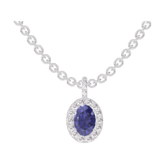 Pendant White gold 9 carats - Blue Sapphire Oval 0.3 Carats - Halo Diamond white - Setting Diamond white - Chain Rolo